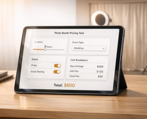 BlogSet competitive photo booth prices for events with our easy tool. Input duration, event type, and extras to get a detailed cost breakdown!
